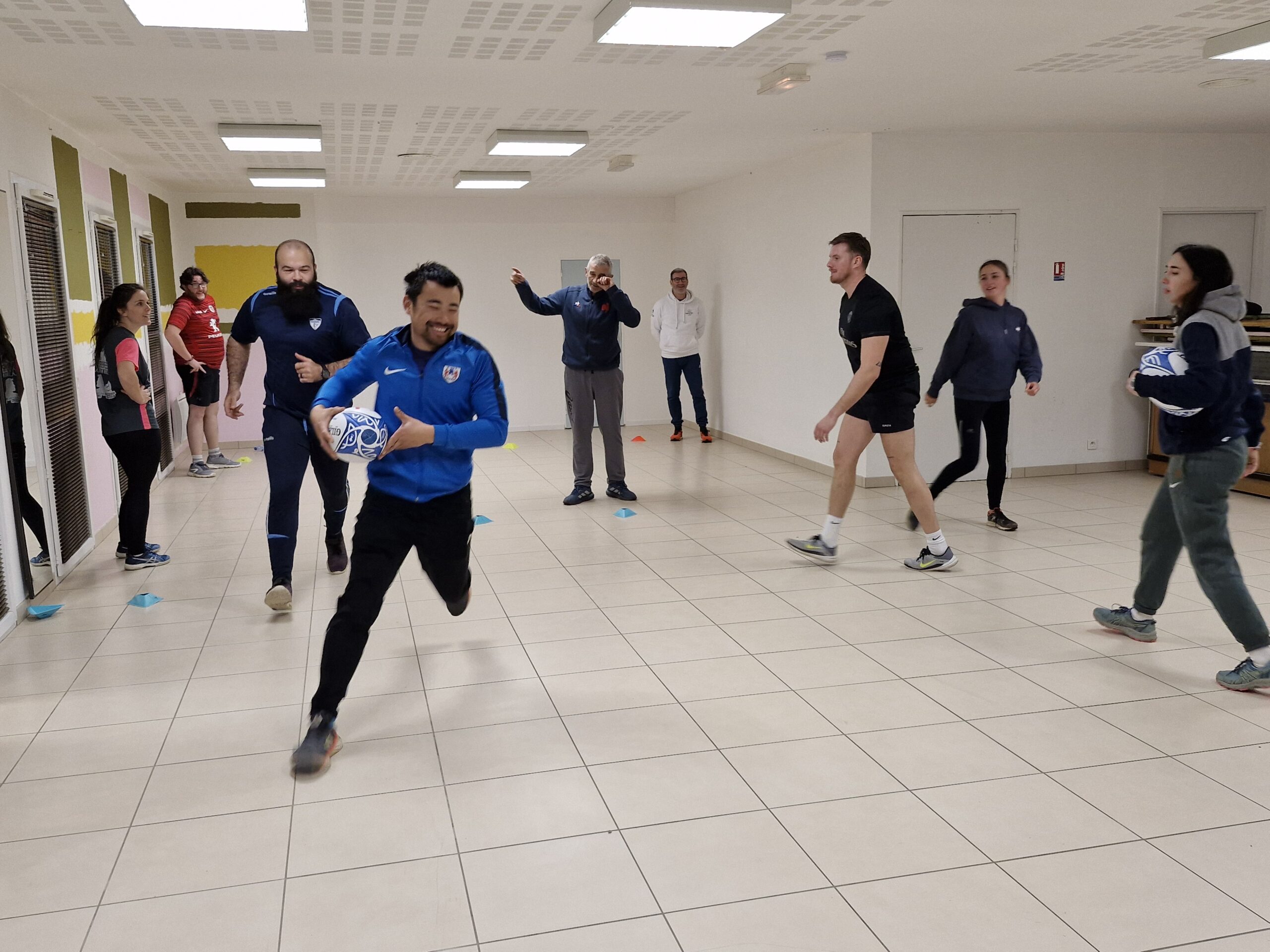 • Atelier rugby : exercices de passe et opposition attaque-défense en « toucher ».