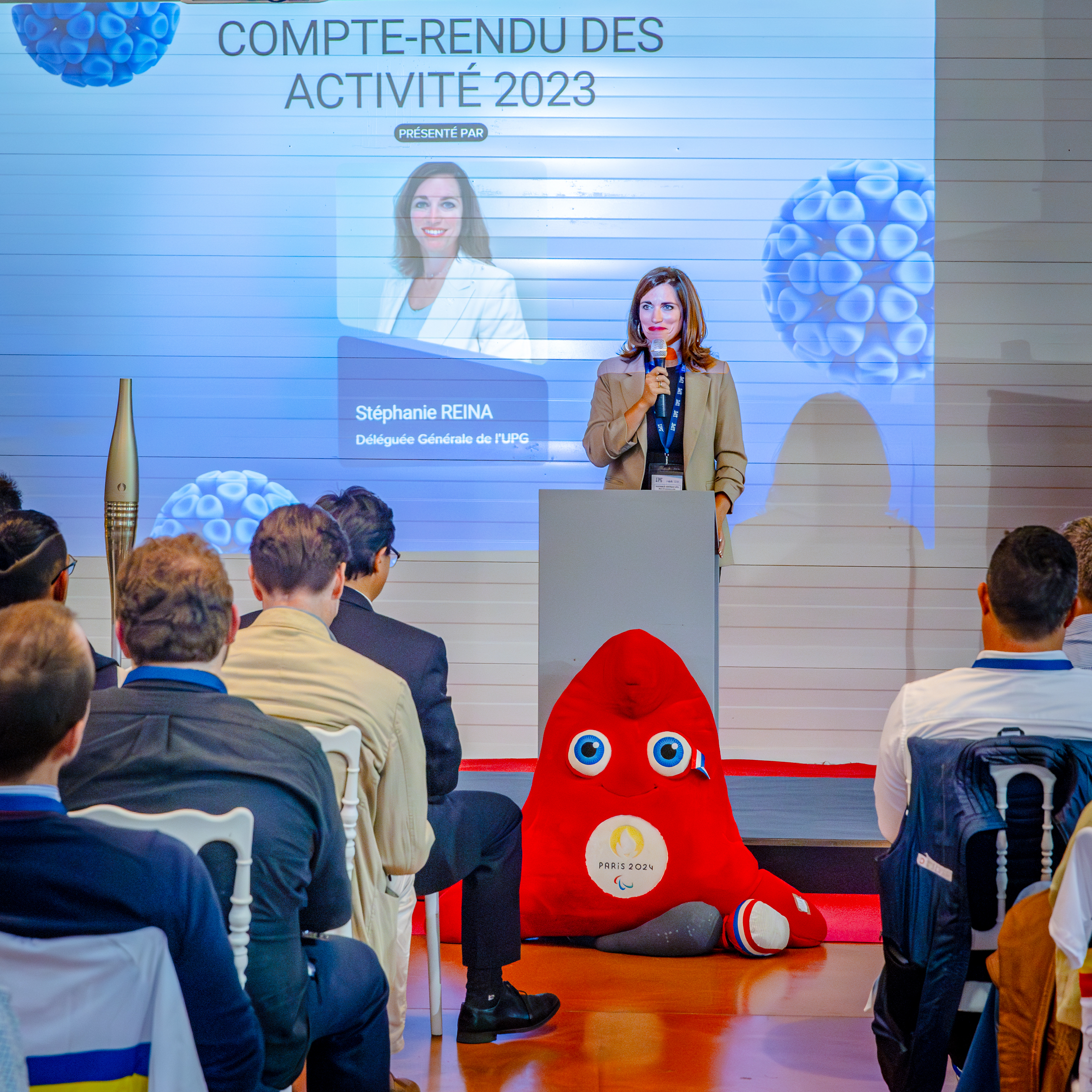 La soirée s’est terminée dans une ambiance détendue avec un buffet dînatoire. Les participants ont eu l’opportunité de se retrouver dans un cadre convivial, marqué par la présence de la flamme olympique et des mascottes Phryges, symboles des JO de Paris 2024.